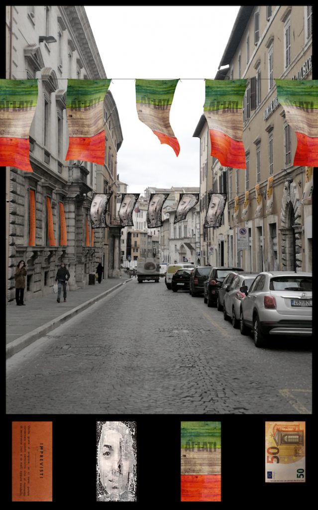 Mario Consiglio, Mauro Cuppone, Carlo De Meo, Simona Frillici “Flags/Bandiere” installazione collettiva, Via Baglioni
