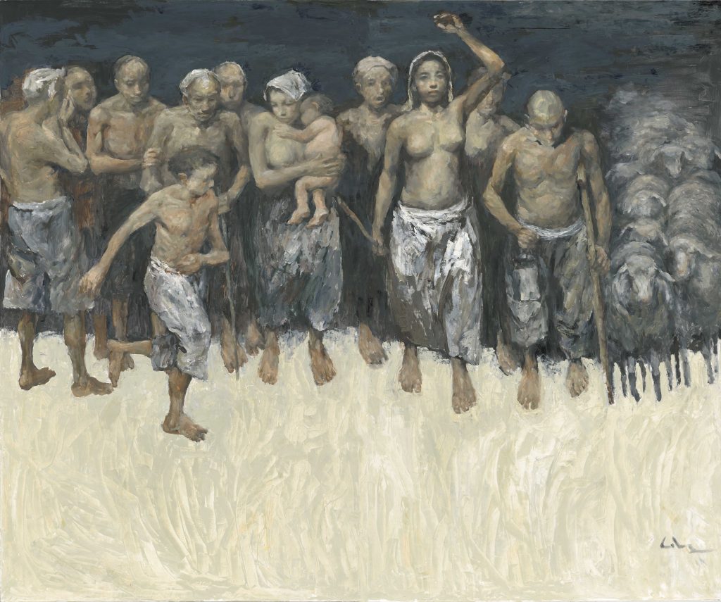 “Si tratta – scrive Laura Villani, curatrice con Metra Lin dell’esposizione, di una mostra con tele di grandi dimensioni, solide nella costruzione e libere nella pennellata fluida, dove, figure potenti dal modellato plastico, sono in costante dialogo con il Rinascimento; tessiture corali dalle profonde reminiscenze occidentali; una spiritualità diffusa che, pur non collegandosi direttamente agli stilemi del cristianesimo, ne veicola contenuti che rappresentano l'essenza dell’umanità facendo sì che la sua opera diventi un ponte per comunicare attraverso un'intelligibilità universale valori estetico-morali: quali amore, gentilezza, speranza e forza”.