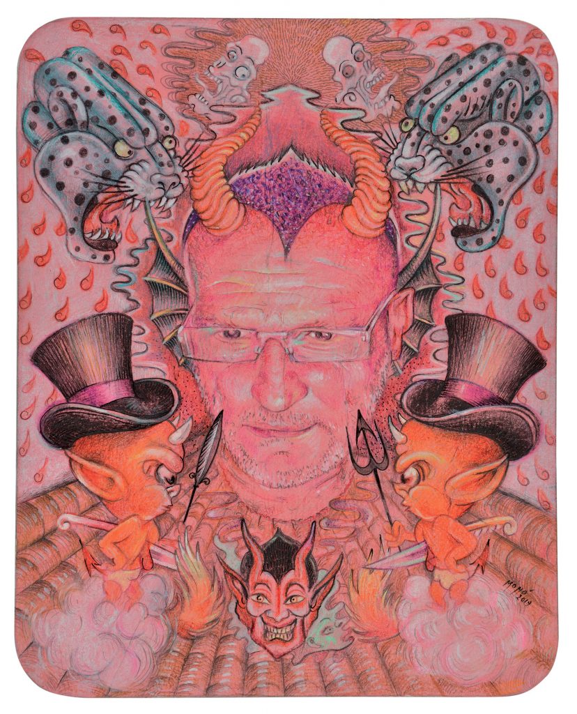 Una provocazione irriverente che s’impone per la qualità delle opere e la sottile pervicace malizia con cui i due seppelliscono l’oggetto della loro seduzione.Le opere ritraggono critici, collezionisti, curatori e galleristi del sistema dell’arte contemporanea siciliano, una carrellata spumeggiante di carnosi e grotteschi personaggi anonimi, le cui fattezze, in realtà, sono assolutamente riconoscibili per chi pratica il mondo dell’arte isolano.