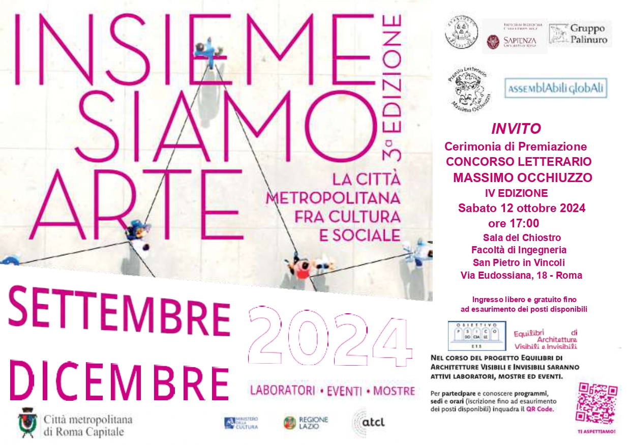 L’associazione culturale AssemblAbili GlobAli OdV, in seguito alla prematura e improvvisa scomparsa di Massimo Occhiuzzo, vivace scrittore e generoso docente di numerosi laboratori di scrittura creativa, ha organizzato la quarta edizione del concorso letterario che Obiettivo Psico Sociale ETS ha ospitato e promosso nel progetto Equilibri di Architetture Visibili e Invisibili