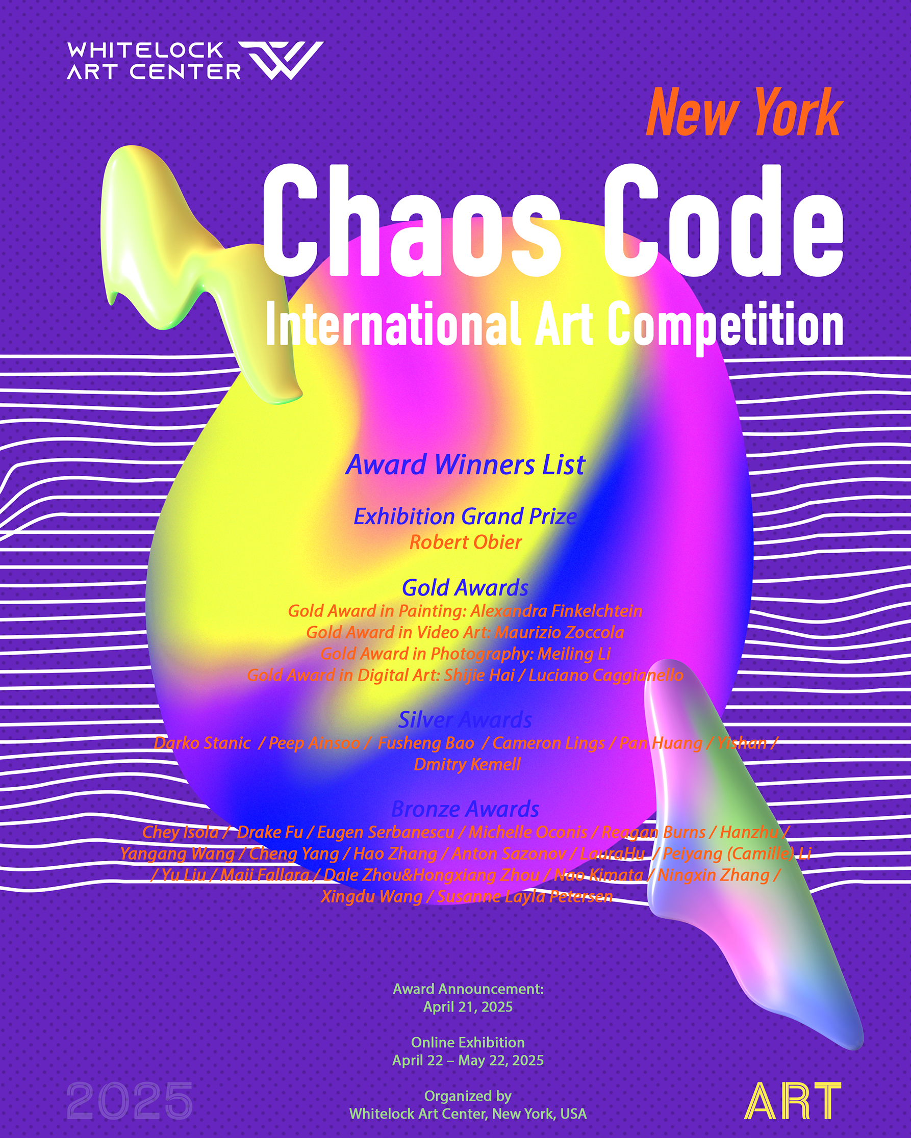 On April 21, 2025, the Whitelock Art Center in New York officially announced that Chaos Code – 2025 New York International Art Competition will be exhibited online from April 22 to May 22. The winners of this year’s international art competition will be formally revealed through mainstream and major art media outlets.