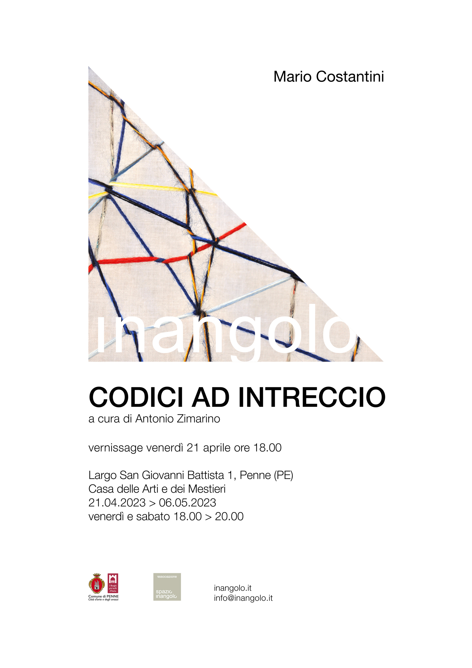 Inaugura venerdì 21 aprile alle ore 18.00 presso Spazio Inangolo la personale di Mario Costantini dal titolo Codici ad intreccio a cura di Antonio Zimarino. Con la sua ricerca nella cosiddetta “fiber art” sembra che Costantini stia oggi lavorando su due aspetti formali fondamentali del minimalismo, un approccio da lui costantemente approfondito e riscoperto nella sua parabola di ricerca artistica: da un lato c’è la forma, la struttura di un’opera che si scarnifica fino alle sue linee, ovvero al suo“disegno” nello spazio; dall’altra, il contenuto, i volumi le eventuali rappresentazioni che ugualmente si sfrangiano e si frantumano contraendo sia loro volta in segni e in linee cromatiche di ciò che resta della realtà stessa.