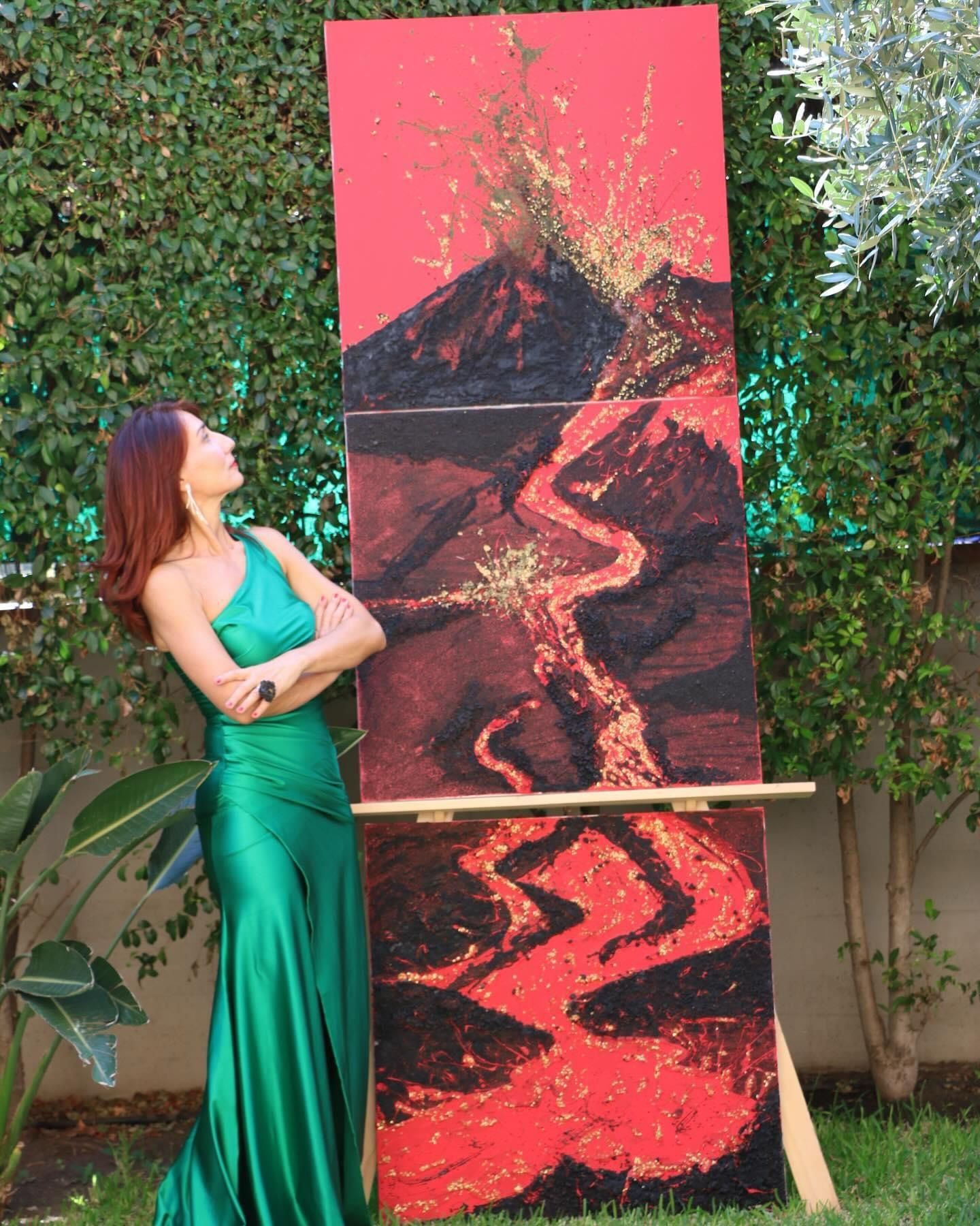 La mostra è destinata a trasportare i visitatori in un mondo accattivante di narrazione visiva, dove ogni pezzo invita alla contemplazione e innesca un dialogo tra l’artista e lo spettatore coinvolgendolo con forte impatto emotivo poiché la cenere lavica che fuoriesce dalle viscere della terra, conferisce alle sue opere l’effetto tridimensionale e riproduce effetto della lava incandescente, rievoca le eruzioni dell’Etna.