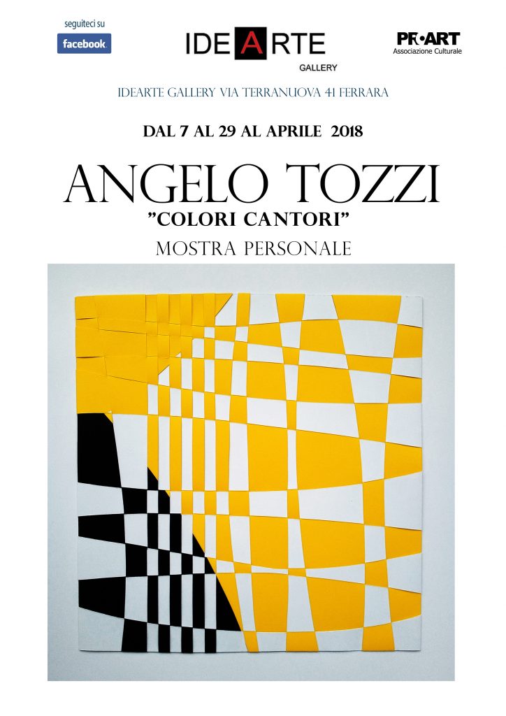 COLORI CANTORI è una proposta espositiva di Angelo Tozzi, sua prima personale in galleria, il titolo del progetto invita a gettare uno sguardo sul rapporto tra musica e colore e sugli stati d'animo del quotidiano. Angelo Tozzi ( primo classificato per l' astratto al Primo Premio nazionale LatinArte nel 1980) realizza le sue opere con cartoncini colorati intrecciati, che creano un effetto "ricamato" all'opera, sempre incentrata sul minimalismo.