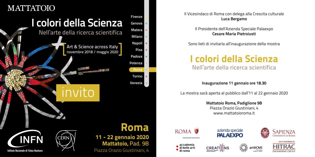 L'evento espositivo fa parte del progetto di "Art&Science across Italy" sponsorizzato dal CERN di Ginevra e dall'Istituto di Fisica Nucleare Italiano (INFN), in collaborazione con le Accademie di Belle Arti d'Italia. La mostra inaugurerà sabato 11 Gennaio 2020, negli spazi del Mattatoio di Roma, padiglione 9b. La mostra è visitabile fino al 22 gennaio 2020.
