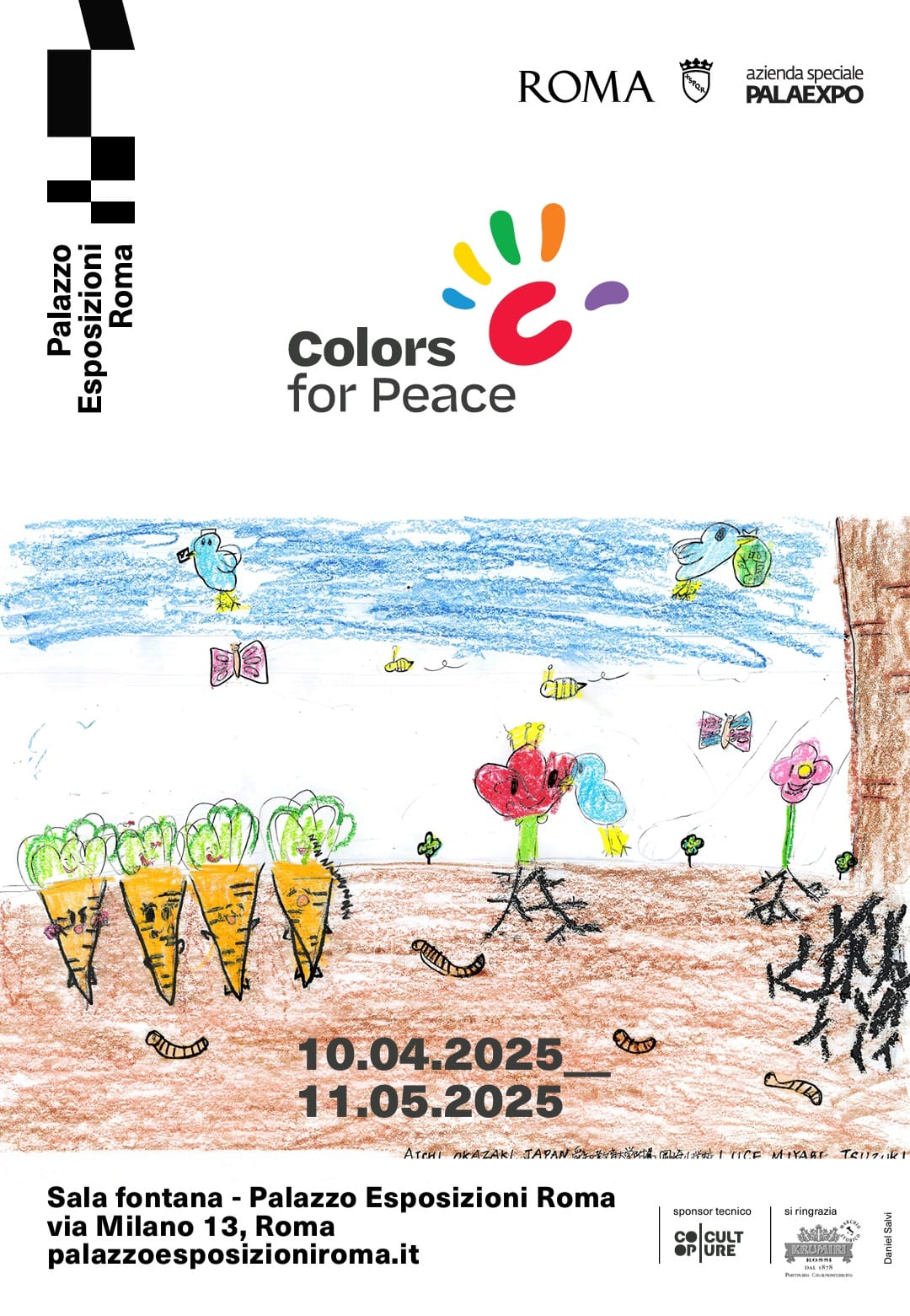 Dal 10 aprile all'11 maggio 2025, il Palazzo delle Esposizioni di Roma ospiterà la mostra "Colors for Peace", un'esposizione gratuita che raccoglie disegni realizzati da bambini di oltre 150 nazioni. L’iniziativa, promossa dall’associazione Colors for Peace, celebra il decimo anniversario della sua fondazione nel 2015 a Sant’Anna di Stazzema, unendo la creatività dei più piccoli a un potente messaggio di speranza e inclusione.