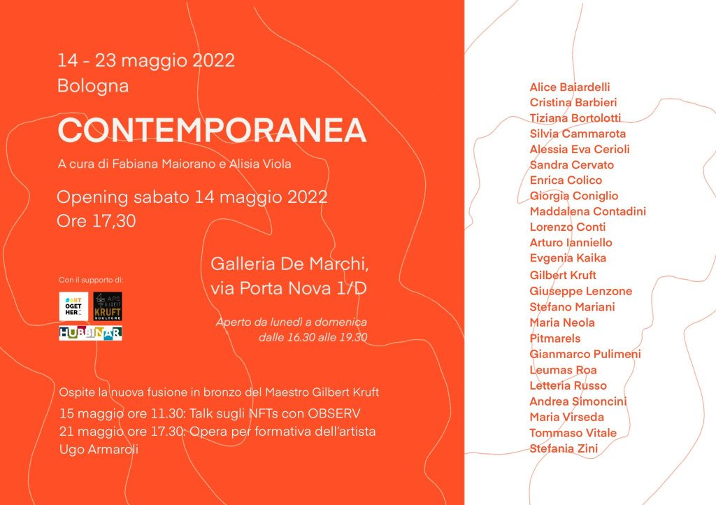 A cura di Fabiana Maiorano e Alisia Viola, "Contemporanea" è la mostra d'arte collettiva che si terrà dal 14 al 23 maggio presso la Galleria De'Marchi di Bologna e metterà in luce i lavori recenti di artisti accuratamente selezionati. Il progetto