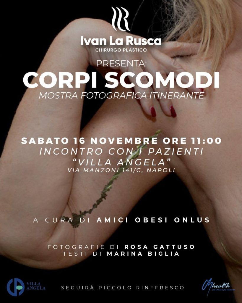 Sabato 16 novembre 2024, alle ore 11.00, presso Villa Angela a Napoli, si terrà la mostra fotografica itinerante Corpi Scomodi, un progetto che nasce dalla collaborazione tra il rinomato chirurgo plastico Ivan La Rusca e l'associazione Amici Obesi Onlus. L'iniziativa mira a rompere il silenzio sull'obesità, affrontando il tema con uno sguardo autentico e coraggioso, per sensibilizzare il pubblico e superare i pregiudizi legati a questa malattia.