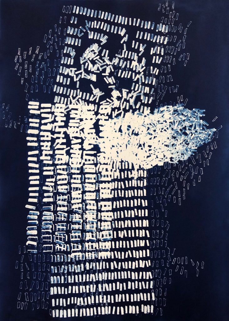 A Gli eroici furori vengono presentate due azioni diverse e congiunte di Paki Paola Bernardi: la prima ci propone una serie di cianotipie stampate durante la sua residenza a Berlino un anno fa che in parte si ispirano alla sua esperienza della città e al suo desiderio di comunicare, in parte agli anni ‘20 e ’30 della Bauhaus e dello sviluppo di nuove e rivoluzionarie teorie psicanalitiche.