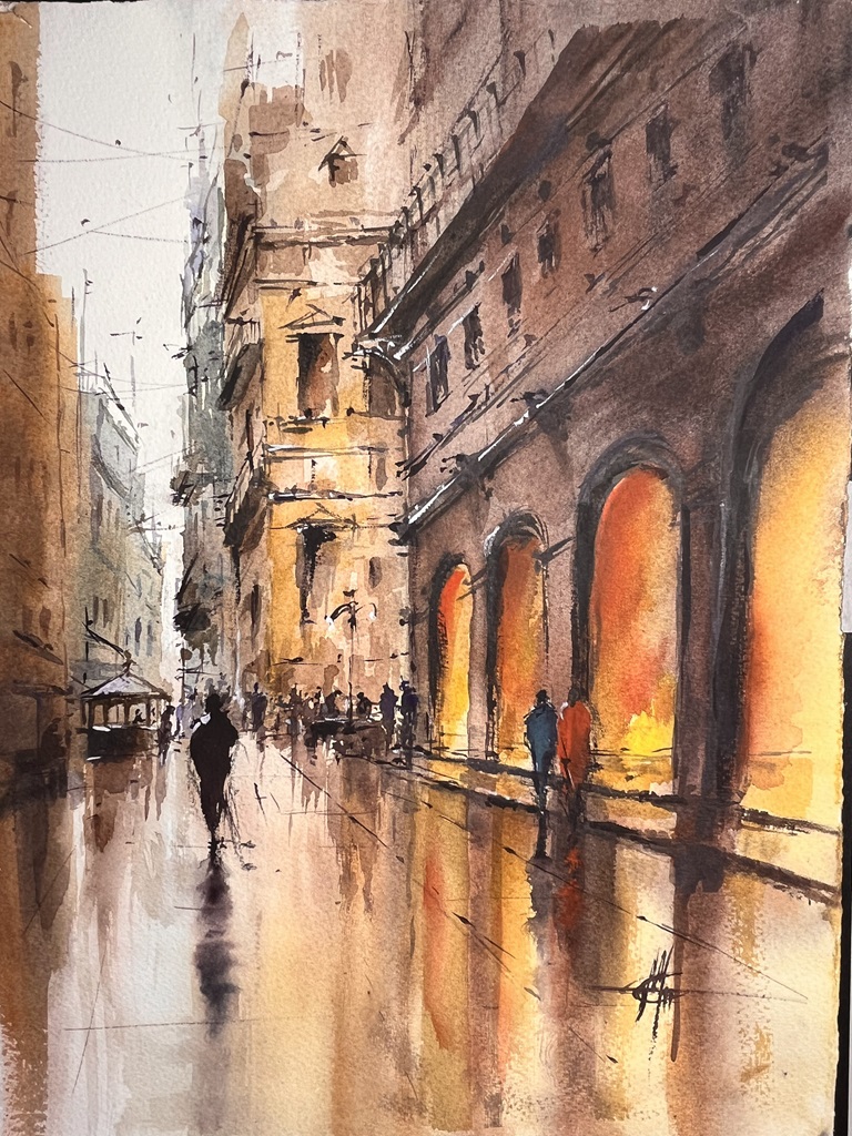 Tra paesaggi urbani e paesaggi naturali, con qualche breve digressione nella figura umana, si evidenzia l'armonia cromatica utilizzata per creare atmosfere suggestive dall’espressione libera e meditativa, senza la necessità di descrivere in dettaglio ciò che viene rappresentato, grazie alla natura fluida e sfuggente dell’acquarello.