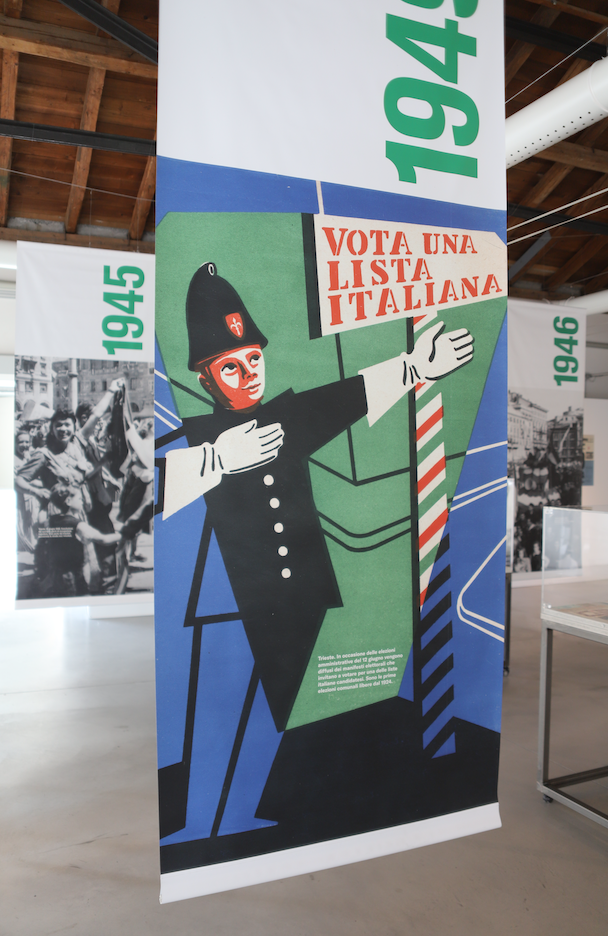 Promossa nell’ambito delle iniziative culturali “Vola Colomba” per il settantesimo anniversario del ritorno di Trieste all’Italia, realizzate dal Comune di Trieste con il sostegno della Regione Friuli Venezia Giulia, la mostra propone una cronistoria narrata attraverso varie classi di materiali: scene di vita politica, ma anche quotidiana, si alternano nella rassegna di quegli eventi che portarono Trieste all’atteso ritorno all’Italia. Il viaggio all’interno del percorso espositivo offre al visitatore gli strumenti per meglio comprendere le complessità e le difficoltà che contraddistinsero il decennio ’45-’54 nella città di Trieste.