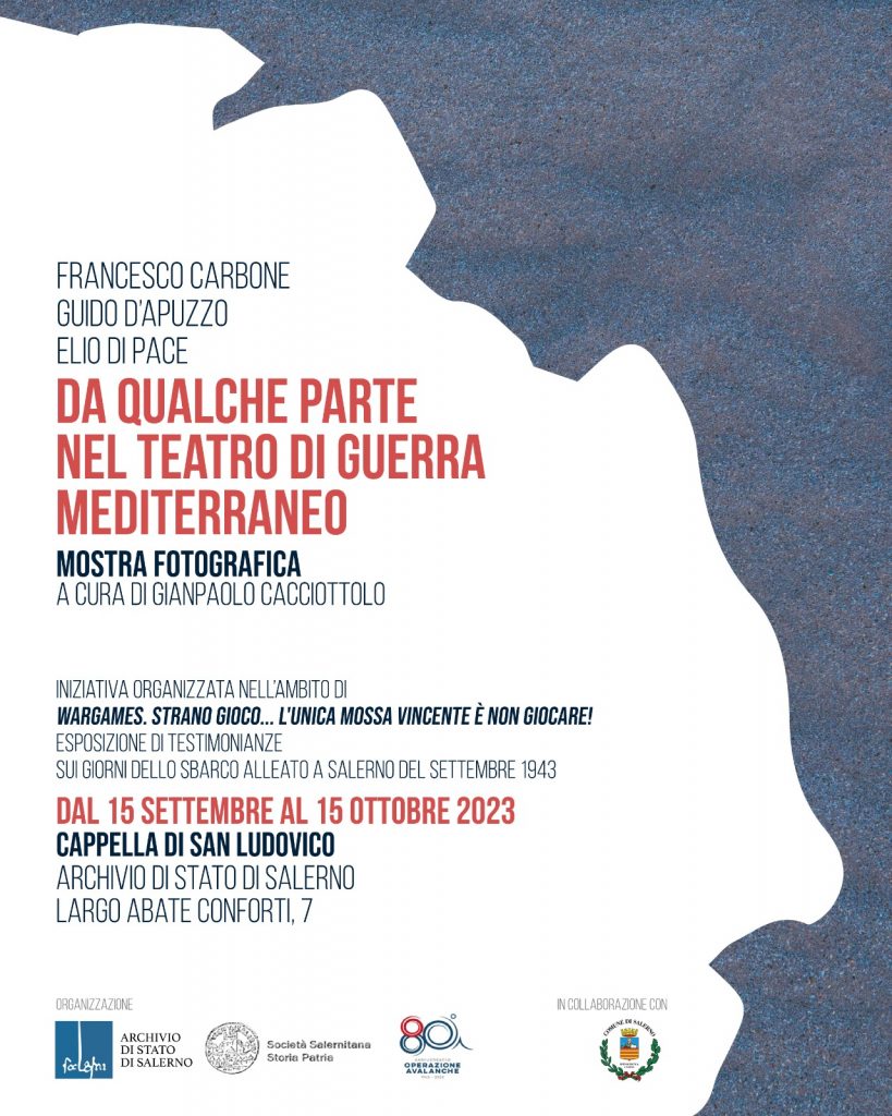 Mostra dedicata ai luoghi dello sbarco di Salerno (Operazione Avalanche), riletti in chiave contemporanea da tre artisti che utilizzano principalmente il mezzo fotografico: Francesco Carbone, Guido D'Apuzzo, Elio Di Pace. A cura di Gianpaolo Cacciottolo