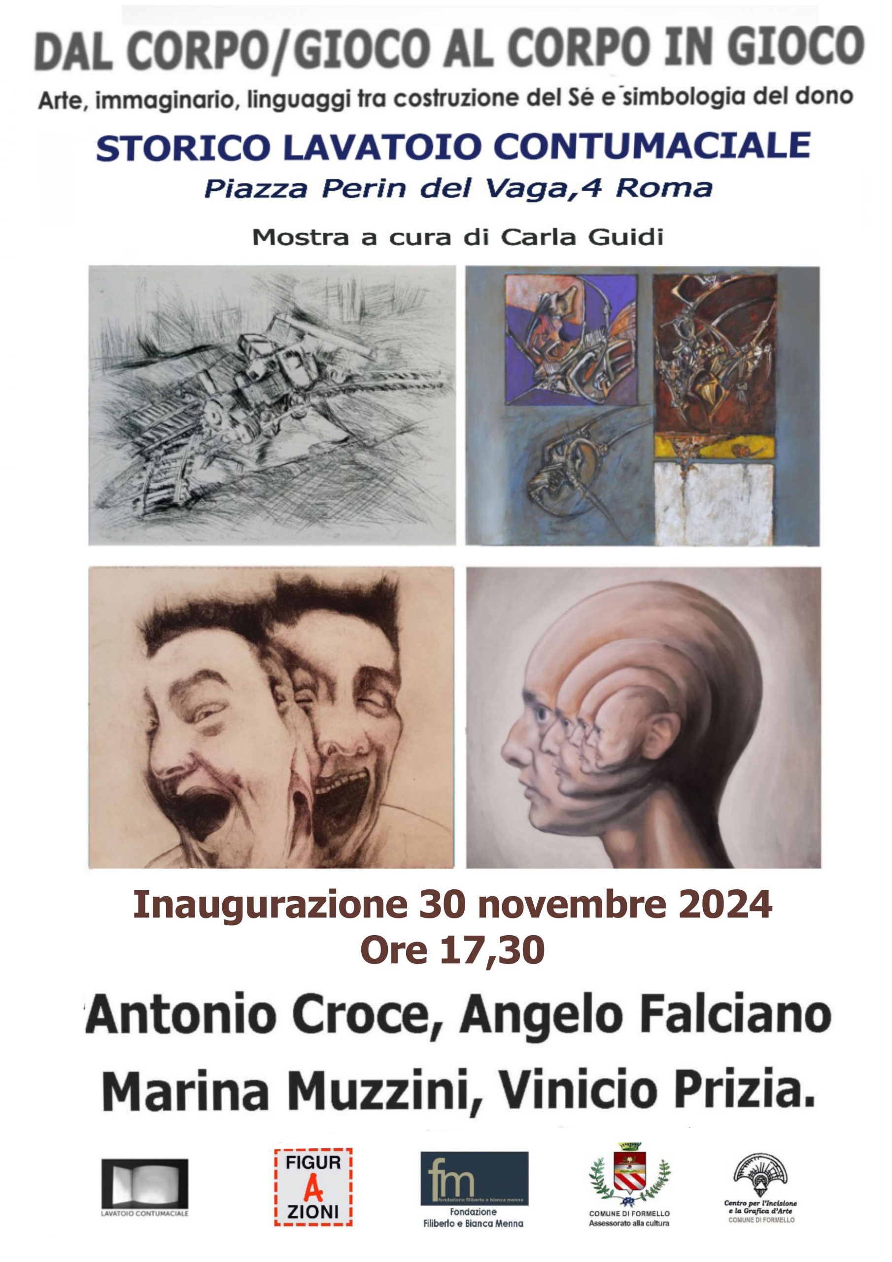 Il titolo di questa mostra e di questo Progetto a cura di Carla Guidi è “DAL CORPO/GIOCO AL CORPO IN GIOCO” Arte, immaginario e linguaggi nella costruzione del Sé, presso la storica Associazione culturale “Lavatoio Contumaciale” di Roma – (Anno 50° diretto da Tomaso Binga)