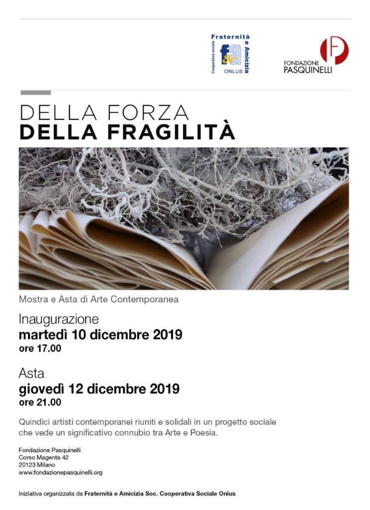un significativo connubio tra Arte e Poesia. L’iniziativa, organizzata da Fraternità e Amicizia Soc. Cooperativa Sociale Onlus, si svolgerà il 10 - 11- 12 dicembre presso la Fondazione Pasquinelli di Milano, luogo particolarmente dedicato all’Arte.