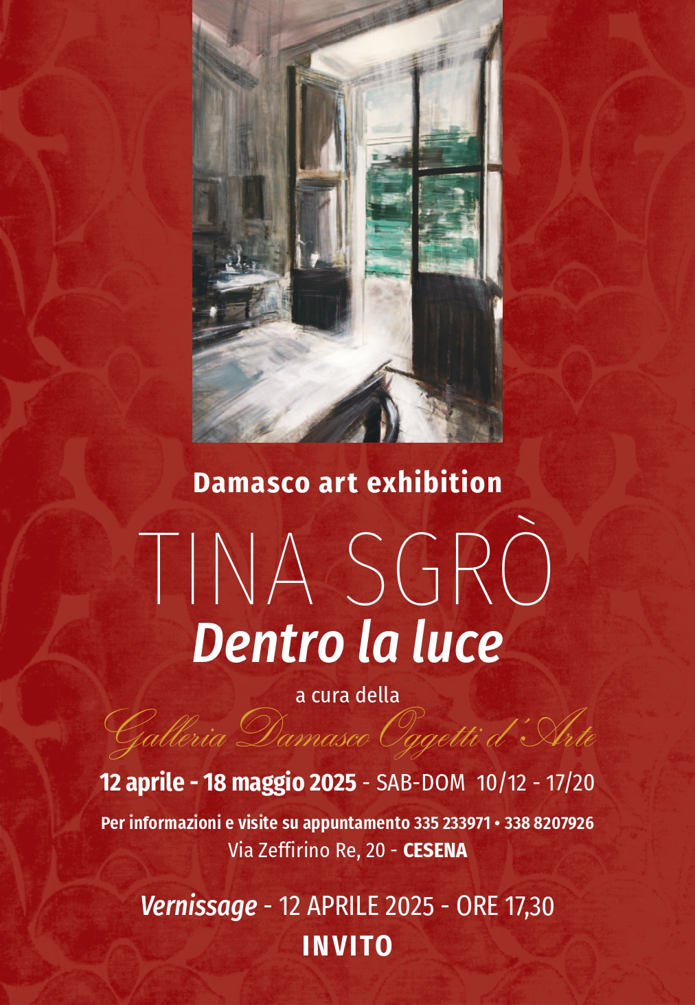La mostra “Dentro la luce” realizzata a Cesena dalla Galleria Damasco presenta 26 opere dell’artista calabrese Tina Sgrò, che lavora tra Milano e Reggio Calabria ed è da tempo legata alla Galleria d’arte cesenate, con i cui titolari condivide una stretta collaborazione professionale e un sentito rapporto di amicizia.