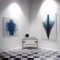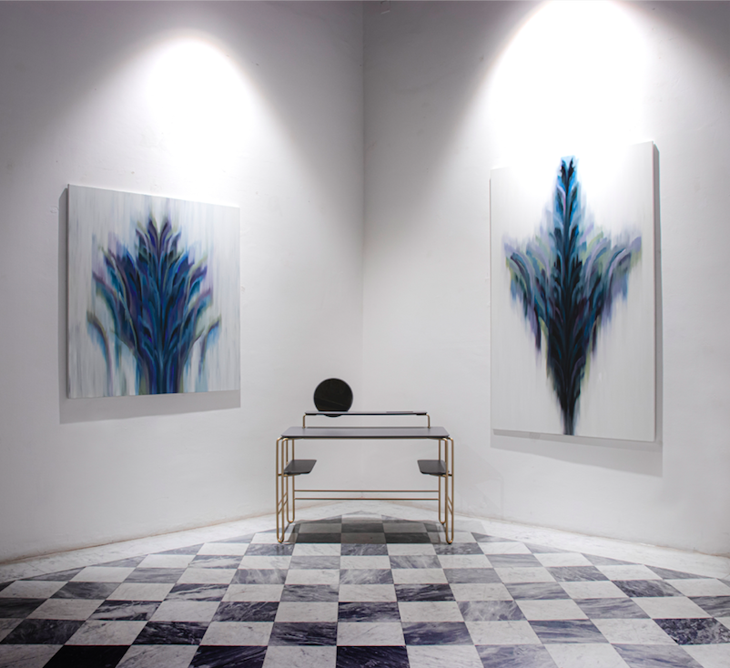 Grimilde è una console desk che si caratterizza per le sue linee minimal e raffinate, con due sottopiani impreziositi da stampe digitali a disegno geometrico. La sua estrema versatilità le permette di trasformarsi in una postazione make-up dotata di specchio, o anche in un comodo scrittoio. Negli spazi della galleria Cluster, Grimilde è stata posizionata accanto ad alcune tele di Federika Fumarola che con le loro forme insolite e sfuggenti, danno vita a un piacevole contrasto con le linee essenziali e geometriche della console desk.
