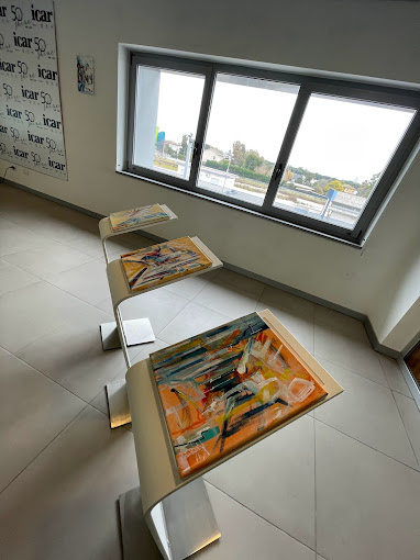 Mostra personale d'arte contemporanea, pittura informale, nello spazio della concessionaria ICAR SPA sede espositiva di MAD Museo d'Arte Diffusa a Latina. La mostra a cura di Fabio D'Achille, è un viaggio artistico tra dipinti ed installazioni pittoriche dell'autrice residente a Terracina (LT). Opere dalle collezioni Ricalcolo l'itinerario 2023, Diario di viaggio 2022, Eroi&Robot 2021, Il volo 2019.