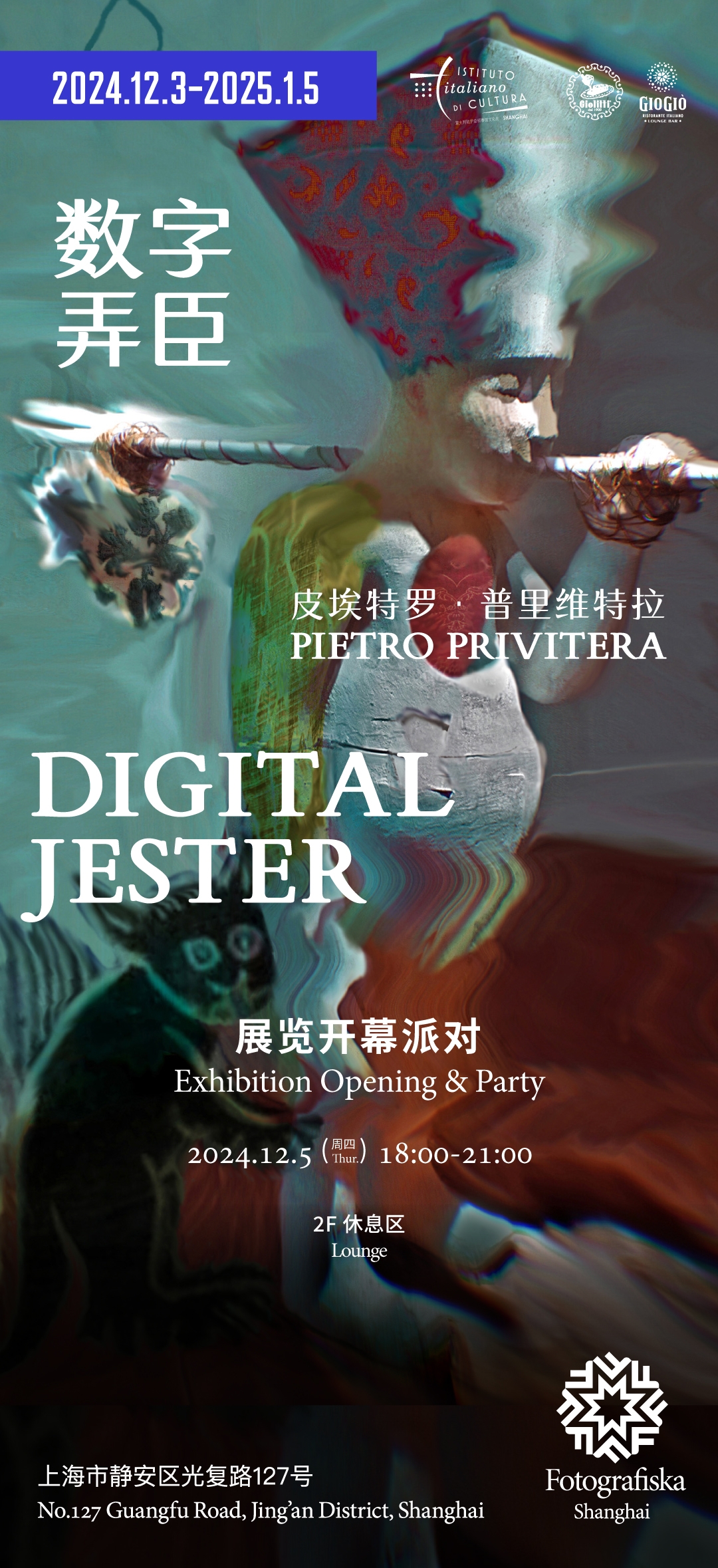 Il museo Fotografiska di Shanghai, in collaborazione con l'Istituto Italiano di Cultura di Shanghai, presenta la mostra personale di Pietro Privitera, Digital Jester: A Grotesque Carnival in Binary Code, in programma dal 3 dicembre 2024 al 5 gennaio 2025. In un carnevale digitale di immagini stravaganti e surreali, Privitera affronta in modo irriverente e giocoso le paure irrazionali che circondano l'intelligenza artificiale attraverso i suoi assemblaggi digitali di creature grottesche.