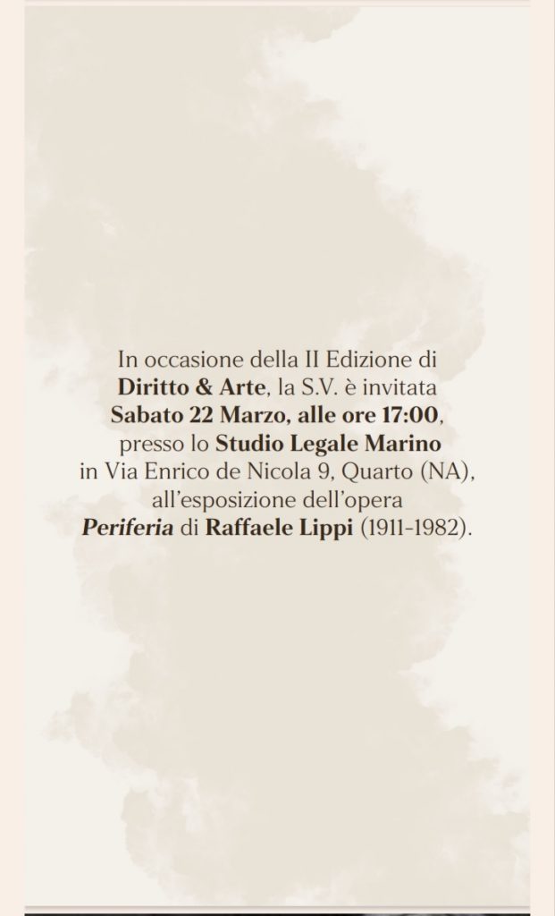 torna ai comunicati stampa Diritto e Arte Arte Via Enrico de Nicola,9, Quarto, Napoli, 80010, Italia 22/03/2025 - 26/04/2025 Presentazione opera di Raffaele Lippi Scarica il comunicato