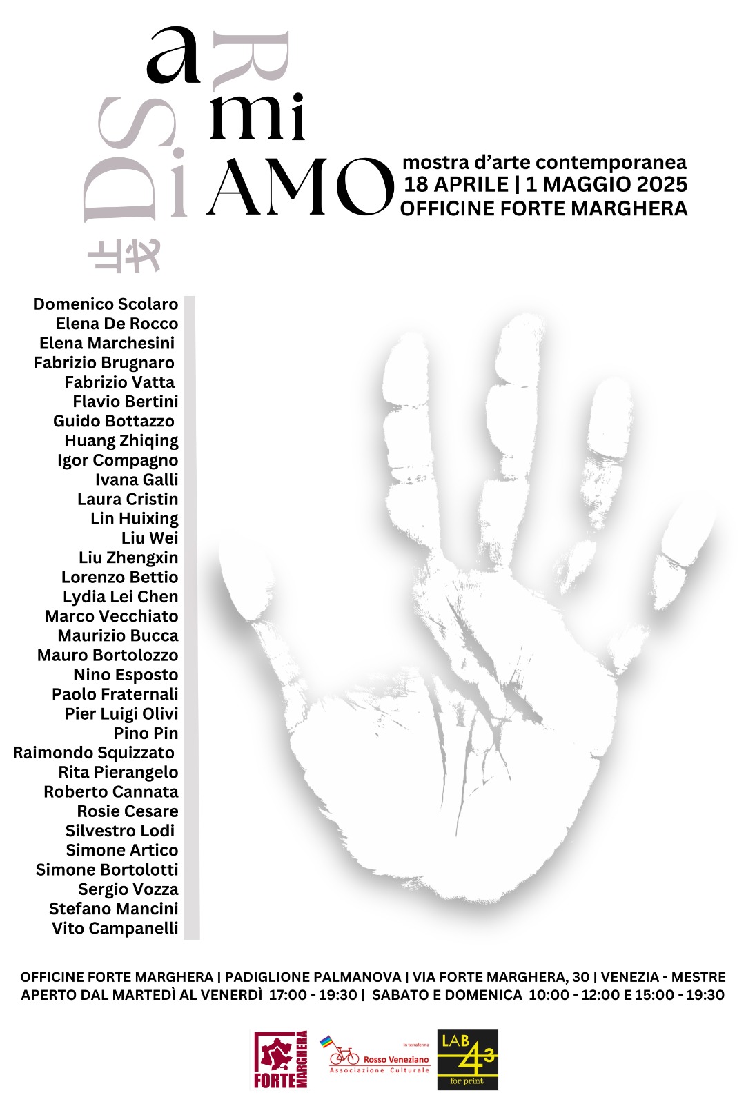 Nel contesto di Forte Marghera, luogo di stratificazioni storiche e militari, questa mostra diventa un gesto di riconversione simbolica: gli spazi delle Officine, un tempo destinati alla produzione e manutenzione di strumenti di difesa, ospitano ora opere che esplorano il concetto di disarmo in senso ampio, etico, estetico e relazionale.