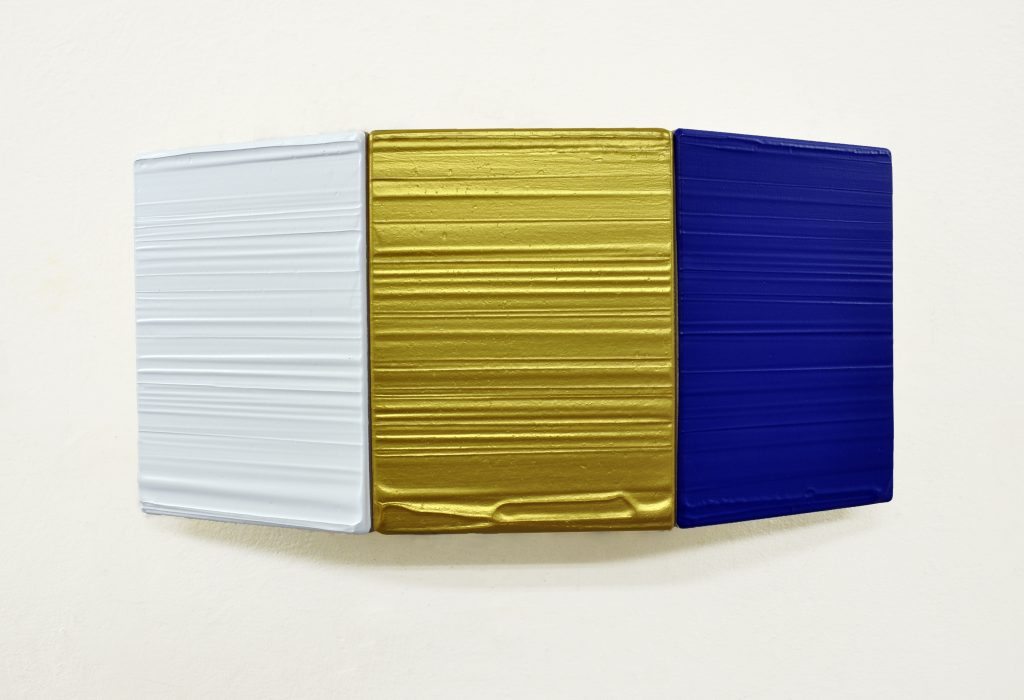 La concretezza dell’opera, la presenza e la possibilità di senso sono il risultato di un perfetto equilibrio tra pittura stesa in materiche modulazioni in armonico contrasto con la consistenza dello spessore del supporto il cui volume, nella sua presenza fisica perimetra e definisce la superficie dell’opera, spazio questo ove il lento mutare della luce e le vibrazioni delle scansioni lineari suggeriscono lo scorrere del tempo; nello spazio relativo dell’opera nasce l’intuizione di un tempo mentale, luogo di sintesi tra realtà e immaginazione.