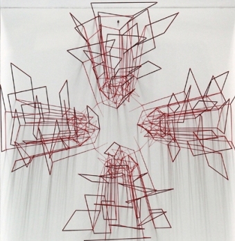 Emanuela Fiorelli (1970) costruisce architetture dinamiche, “tracciati e percorsi spaziali che diventano poi oggetti, incarnazioni di geometrie limpide”. Nelle sue opere si percepisce l’eco del clinamen lucreziano, un’arte atomistica che dal caos giunge alla creazione di opere in cui l’equilibrio estetico e spaziale si sommano.