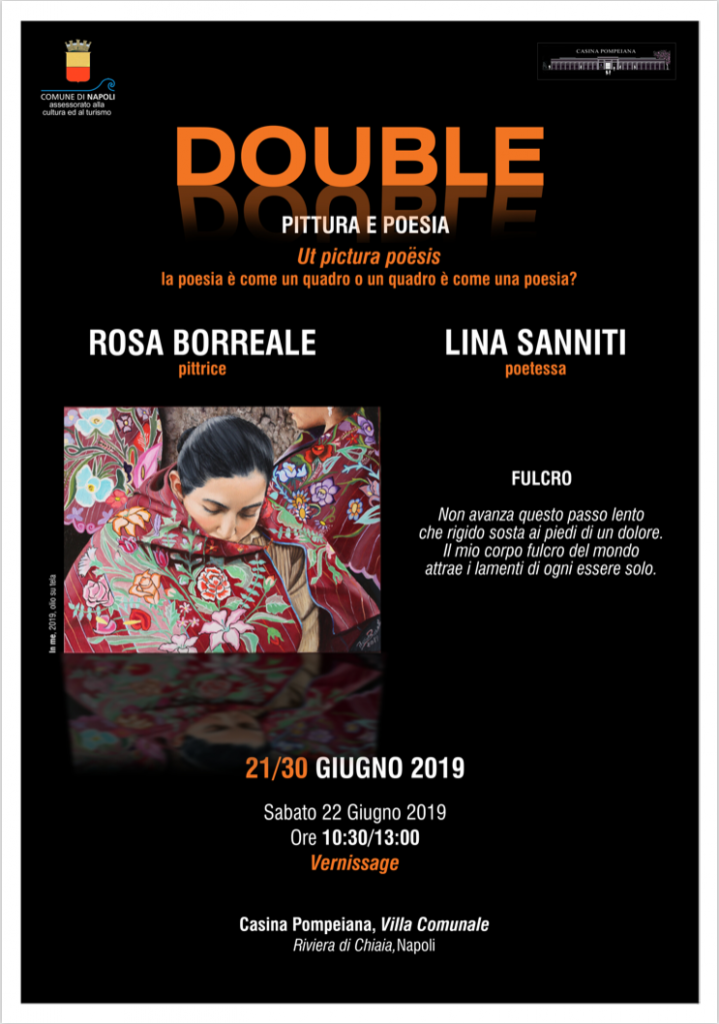 DOUBLE è il titolo della mostra/evento presso la Casina Pompeiana di Napoli dal 21 al 30 giugno 2019. In mostra le opere della pittrice Rosa Borreale e i versi della poetessa Lina Sanniti.