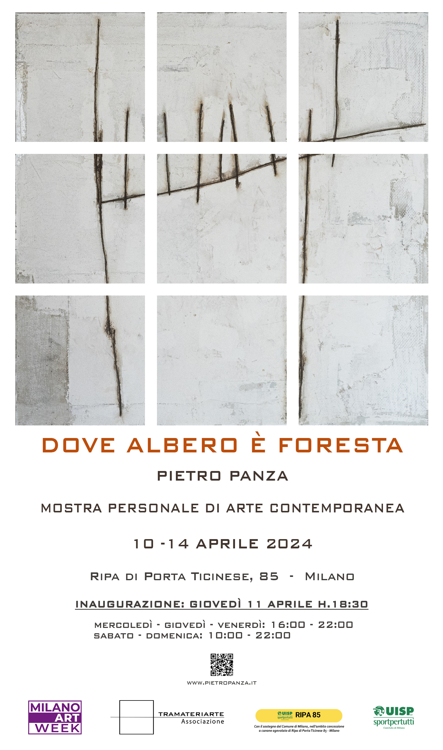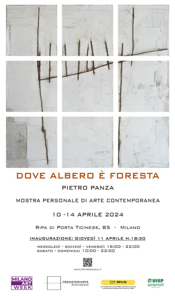 L’associazione culturale TRAMATERIARTE presenta la mostra personale di Pietro Panza intitolata Dove Albero è Foresta (Archetipo Verticale), all’interno delle bellissime Palazzine Liberty sede della UISP aps in Ripa di Porta Ticinese 85 Milano. La mostra sarà aperta al pubblico dal 10 al 14 aprile, durante l’ART WEEK di Milano e sarà inaugurata giovedì 11 aprile alle ore 18:30.