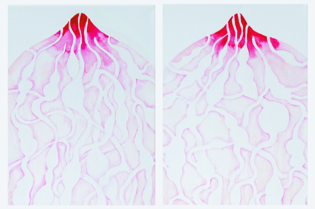 A Matera nella mostra curata dalla direttrice artistica della Momart Gallery Monica Palumbo, l'artista parla di trasformazione, identità e intimità, spiritualità declinata in chiave comunicativa. È il femminile che si appropria di una quotidianità in cui il corpo, persa la sua mercificazione, diventa una linea sinuosa immersa in uno spazio indefinito, un elemento dotato di un'energia vibrante e potente capace di superare i confini immaginari. Dai disegni di Šenkyřík emerge una delicatezza declinata attraverso l'uso di colori tenui, rarefatti, eterei, così come eteree sono le linee che danno concretezza al suo pensiero; immagini che sfumano l'una nell'altra, fondendosi tra loro e con ciò che le circonda. Riferimenti visivi comuni e riconoscibili hanno bisogno di essere indagati con lo sguardo di chi è in grado di andare oltre la forma e coglierne, attraverso il proprio sguardo interiore, il principio nascosto. La nascita, la vita, il piacere, il dolore, la felicità e la gratitudine sono le basi su cui si costruisce la poetica dell'artista, esplicita e diretta ma, allo stesso tempo, dotata di un'estrema delicatezza tale da suscitare, nello spettatore, emozioni contrastanti, forti e sincere. Attraverso le opere di Markéta Šenkyřík, dunque, la forma diventa sostanza minimale, pulita, diretta e trasformata, condivisione di esperienze di vita come atto devozionale, dono che si trasforma in azione catartica ed esprime il significato puro dell'essere madre, donna, corpo e anima.