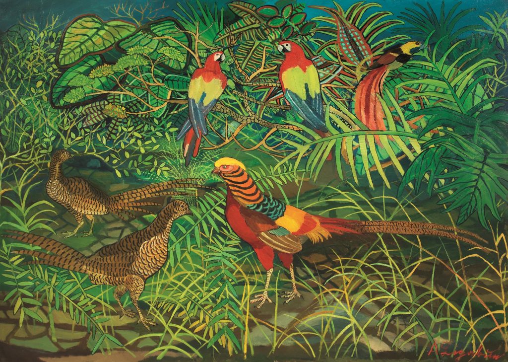 E di grandi dimensioni è anche l’opera di Mario Schifano SENZA TITOLO (Rosso e Blu) del 1965, così come la tela di Ottone Rosai RAGAZZO A TEATRO (IL LOGGIONE) del 1950, dello stesso artista è presente in catalogo il raro dipinto del 1933 I SOLITARI. Anche Antonio Ligabue partecipa all’incanto con BOSCO CON FAGIANI E PAPPAGALLI, una grande tela del 1960 stimata 20.000/40.000 euro, mentre di Gino Severini vengono proposti due opere: il pastello su carta intelata SENZA TITOLO del 1961 e il raro bozzetto del 1957 creato per la realizzazione del maestoso mulares del Polittico di Garagnani.