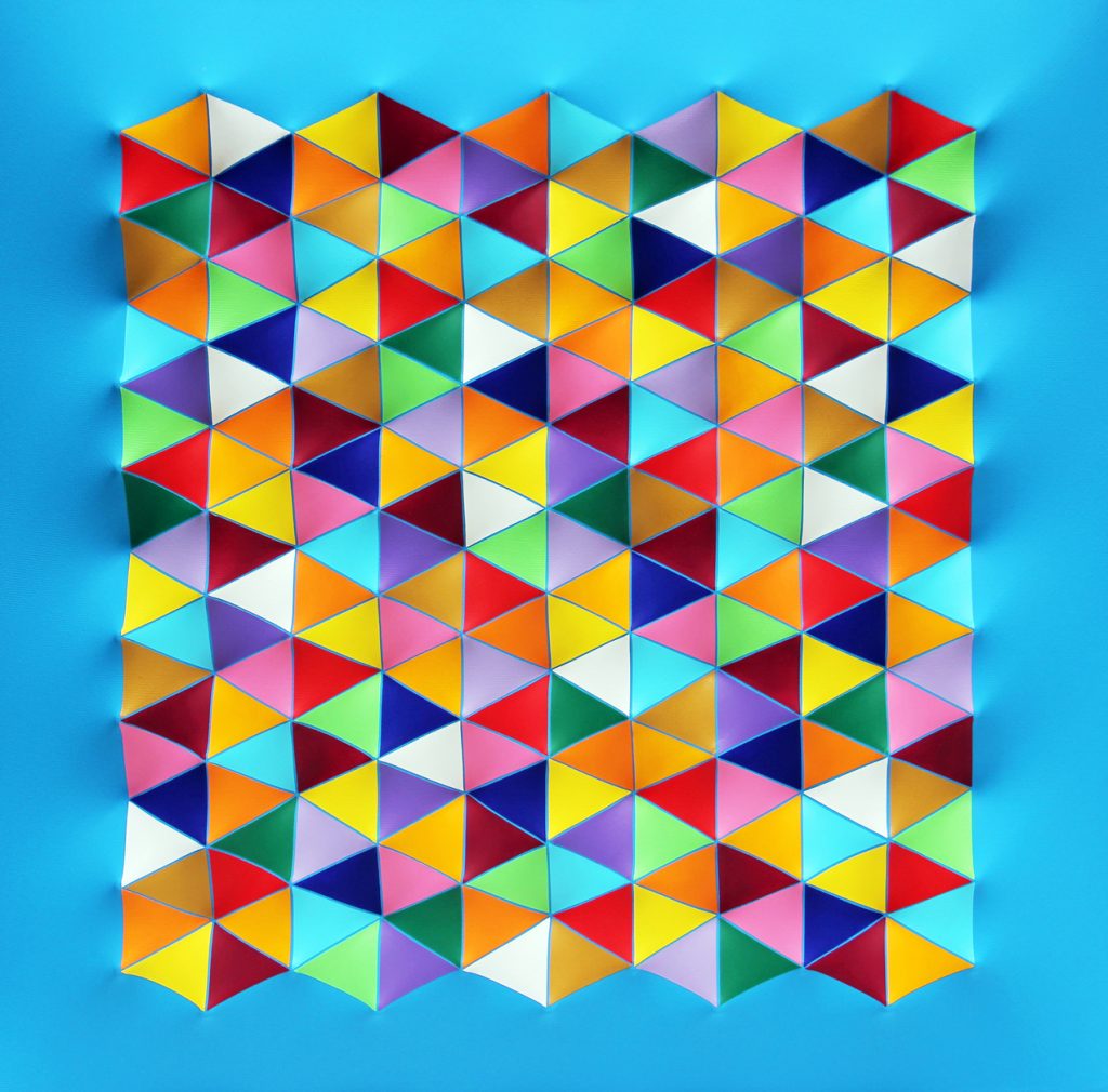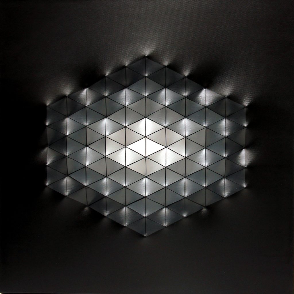 L’artista ha ideato questa mostra nei minimi dettagli a partire dallo spazio in cui le opere verranno esposte. Tutto è creato, pensato e calibrato; persino il titolo Duemila4zero7 – (duemilaquattrocentosette) ha preciso significato: rappresenta la somma numerica dei poligoni presenti sulle opere esposte in mostra. La superficie pittorica diventa palcoscenico su cui l’artista mette in scena razionalità e apparenza; dimensione e codici si muovono nello spazio dell’opera d’arte grazie alla luce e al colore.