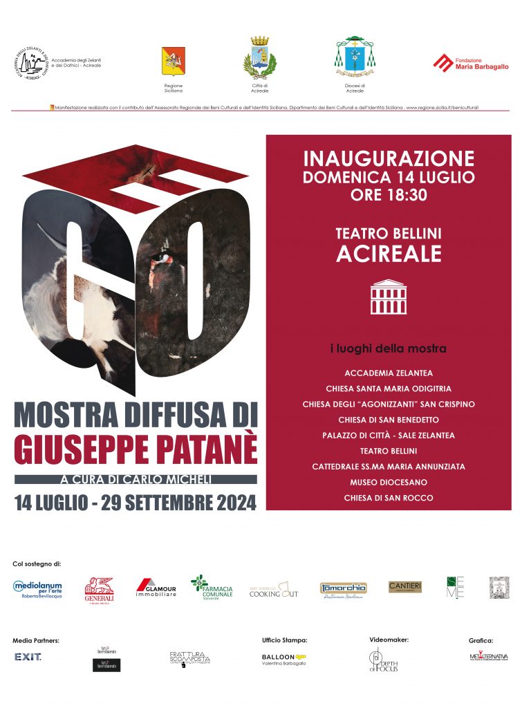 A cura di Carlo MicheliCITTÀ DI ACIREALE14 luglio – 29 settembre 2024 InaugurazioneDomenica 14 luglio 2024 ore 18.30