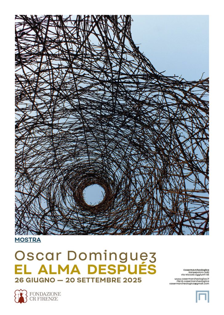 El alma después / L’anima dopo, è la nuova residenza e mostra personale dell’artista argentino Oscar Dominguez, ospitata a CasermArcheologica (Sansepolcro) dal 26 giugno al 20 settembre 2025. Il progetto prende vita a seguito di un periodo di residenza che vedrà l’artista lavorare in loco, in dialogo con la memoria stratificata di Palazzo Muglioni, edificio rinascimentale rinato come centro culturale dopo anni di abbandono.