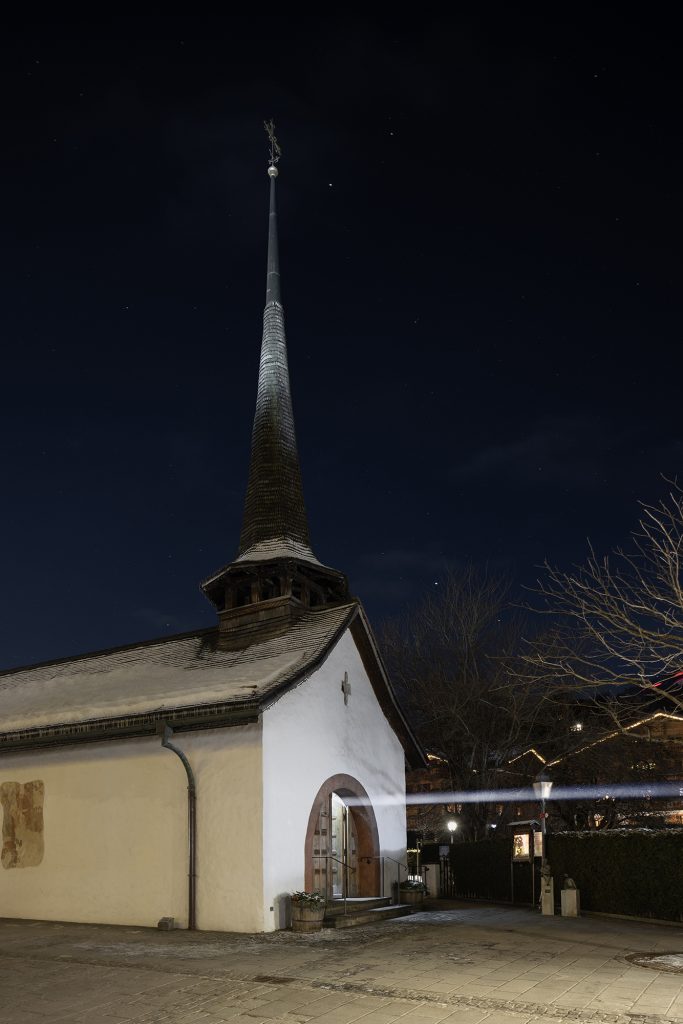Dal 14 febbraio al 2 marzo 2025, la Cappella di San Nicola a Gstaad ospita Liminal Journey, un’installazione site-specific di luce e suono realizzata da Emilio Ferro.
