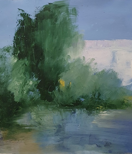 Fin dentro ai colori, tra pennellate e spatolate sicure avvertiamo la forza del suo pensiero, cifra espressiva del suo stile che giunge fino all' estasi della sua immaginazione, come nelle opere "Casa evanescente" e "La luce dell'alba" realizzate in esterno dal vero, ma anche nei dipinti eseguiti nel suo studio l'artista riesce a trasporre l’intensità della luce così come l’ha veduta all' aperto, come un pennello oltre la tela. I quadri in mostra, tra medie e più ampie dimensioni, tra eteree tonalità nei fiori come nei paesaggi, celebrano il chiarismo che li caratterizza, rafforzando via via la grande abilità tecnica e accompagnando lo sguardo del fruitore oltre la composizione già colma di suggestioni creative da interpretare.