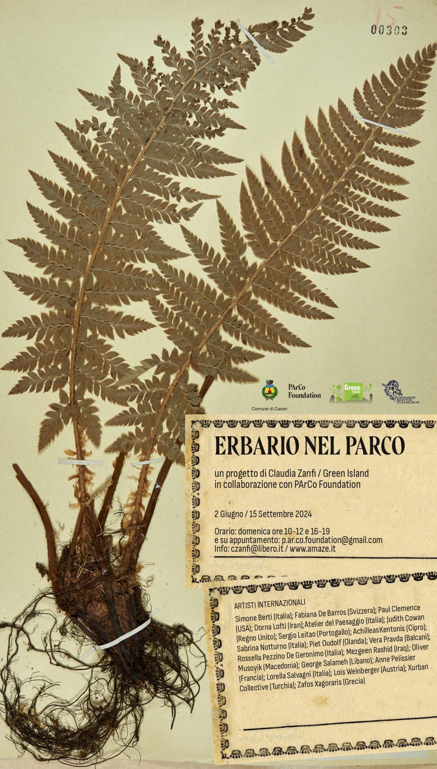 Erbario nel Parco è un intervento artistico pensato per un percorso naturalistico sulle rive del fiume Sile, in concomitanza alla Biennale di Venezia, formato dalle immagini di erbari ideate da oltre 20 artisti internazionali.