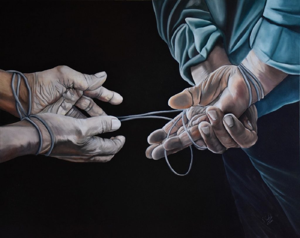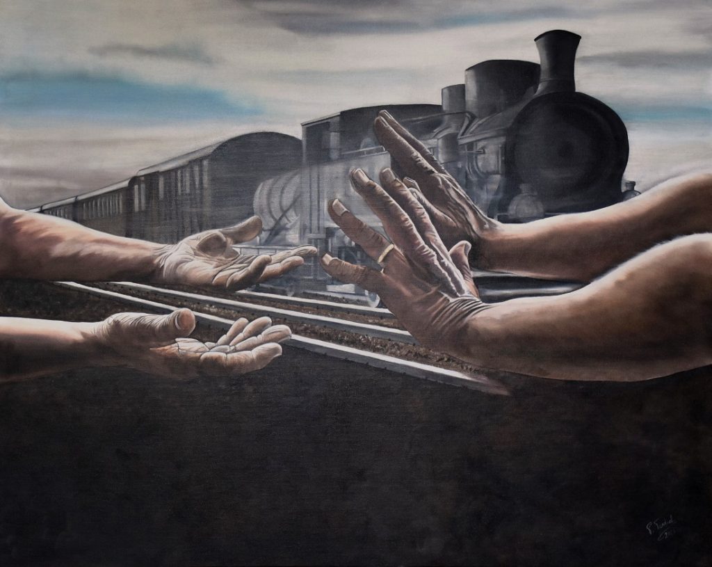 Particolarmente emblematiche sono le rappresentazioni delle mani: mani che parlano senza bisogno di parole, tese verso la speranza; mani che si aggrappano alla vita, che raccontano la fatica e il dolore dell’esilio. Un simbolo universale, che riesce a catturare, con straordinaria forza espressiva, l’essenza stessa della condizione umana. Quello delle Foibe e dell’esodo giuliano-dalmata rappresenta, infatti, un capitolo doloroso e complesso, che non possiamo e non dobbiamo dimenticare. Narrare quegli eventi significa dare voce a chi ha sofferto, a chi ha perso la propria casa, la propria terra, i propri affetti. E rendere giustizia a una verità storica che è rimasta nell’ombra, sepolta dal silenzio.