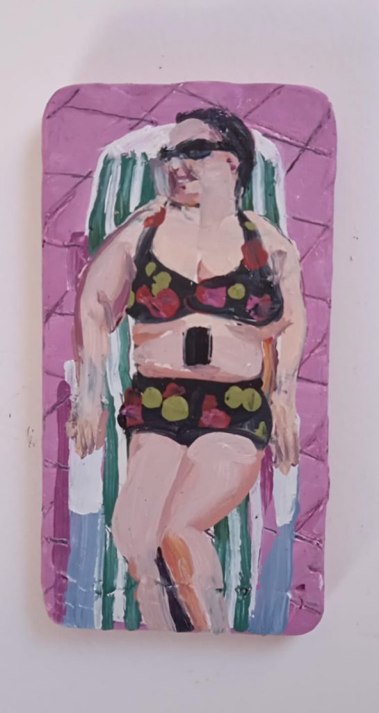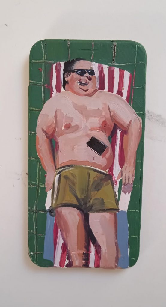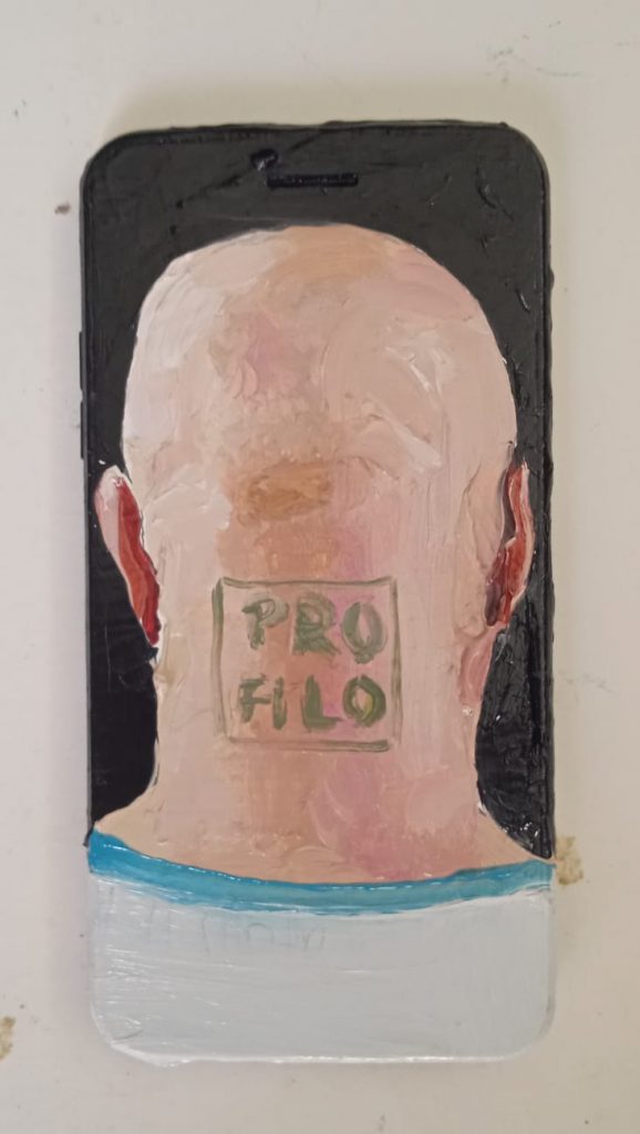 Inquadrato nei contorni del retro dei telefonini, ma librato visivamente verso una dimensione senza confini imposti dalla moda, dalla consuetudine o dalla tecnologia, l’Essere Cellulare di Alessandro Passaro si frammenta, moltiplicandosi, in una miriade di immagini che vanno a costruire l’universo celato dietro lo schermo. Un’umanità che – strettamente legata all’apparecchio telefonico portatile e a quanto esso contiene – inconsciamente brama una via d’uscita dall’impasse odierno; un superamento dell’asservimento all’impero social che si concretizza linguisticamente nelle situazioni delineate dall’artista, nella compenetrazione tra interno ed esterno, figura ritratta e paesaggio, fuori dagli schemi e dalle limitazioni fisiche, in contrapposizione a ogni tipo di omologazione o dettame di mercato, sulla via della completa libertà espressiva e vitale.