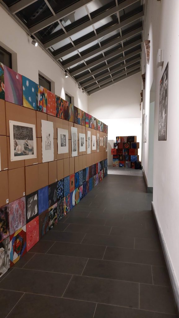 L'allestimento espositivo, ideato dalle docenti di Arte, Prof.sse Lucia Posarelli e Veronica Nannetti e realizzato con il prezioso e fattivo contributo degli studenti del Liceo F. Enriques di Livorno, diventa esso stesso un’armonica installazione artistica dove le 27 acqueforti e acquetinte della Fischer dialogano con le creazioni degli studenti.