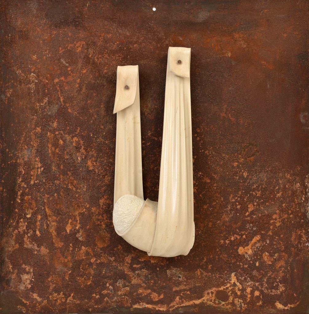 Le opere esposte in mostra presso la Galleria Schanzer testimoniano la recente evoluzione dell’artista, il quale, dopo aver riscontrato i primi limiti con la lavorazione scultorea per il peso dei materiali e la difficoltà nel trasporto delle opere, intuisce la possibilità di conquistare la superficie delle pareti con la pietra. Cicciarella trasferisce quindi le sue sculture su uno sfondo di acciaio corten, ridimensionandole così, da opere free standing a “quadri” da appendere.