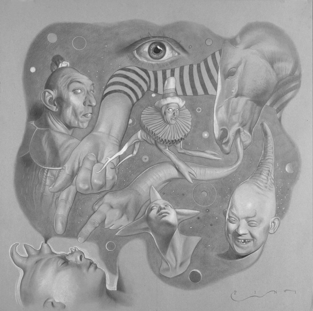 Esposizione personale di arte contemporanea dell’artista emergente capitolino Fabio Pini a cura della Galleria d’Arte ed Associazione Culturale “Agarte – Fucina delle Arti” con testi critici di Alessandro Giansanti. Una selezione di 50 disegni a matita colorata, tempera, grafite e punta d'argento (2018-2023) a tematica onirica e surreale.
