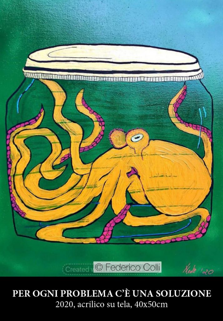 Il figurativo pittorico declinato abilmente da Federico Colli denota una particolare e sfaccettata poetica retrospettiva a monte, che lo ispira, lo guida e lo accompagna nella ricerca e nella sperimentazione creativa, alimentando la fantasia e l'immaginazione e facendo affluire una sensibilità empatica e intuitiva, che lo rendono guizzante e frizzante. La Dott.ssa Elena Gollini ha dimostrato una particolare considerazione di apprezzamento per Colli e ne ha commentato le pregevoli virtù e doti pittoriche affermando: “La produzione pittorica di Federico riassume in sintesi e in chiave simbolica uno stile di vita, improntato e canalizzato verso un'assoluta libertà interiore, ma anche verso un'attenta e accorta osservazione riflessiva, un ascolto silenzioso della ragione conciliante con il cuore e il sentimento, verso una spontanea e genuina quasi disarmante propensione ad aprirsi al dialogo confidenziale con i suoi molteplici moti intimistici. La proiezione e l'amore per lo spirito di avventura lo sostengono anche nella fase creativa così come nel suo vivere quotidiano. Per Federico la pittura è come la rivelazione di un grande intrinseco continente in continuo e costante fermento, con un proprio e speciale moto propulsivo, che produce intense suggestioni e forti sensazioni effusive. Ogni opera è un piccolo scrigno ricco di profusioni sensoriali, improntate alla rivelazione interiore del suo universo creativo sempre in evoluzione. La bellezza formale per Federico corrisponde ad un gusto soggettivo e personale e non può essere etichettata e inquadrata, secondo schemi e stereotipi e si intreccia in accordo simbiotico con la sfera emotiva dei sentimenti. Federico ci offre dei transfert di forte impatto, senza ridondanze inutili e arriva permeante e in modo diretto a coinvolgere l'attenzione del fruitore. Le memorie visive vengono rese vitali e dinamiche dal vibrante bisogno di comunicare e di condividere. La pittura per Federico serve a trasmettere qualcosa che va oltre, a trasferire luoghi e incontri che si illuminano e si accendono di nuova teatralità del presente, spazi della rappresentazione e del narrato, riflessi sulla nostra cultura moderna della psicologia di impressione, rivisitati e perpetrati dai grandi maestri dell'animazione. Per Federico l'arte diventa l'occhio incantato nello sguardo stupefatto e meravigliato che si fonde con la sfera emotiva, l'occhio della scoperta e della riscoperta, che si perde nel ricordo, nell'amore e nella passione, nella manifestazione della sottile valenza del bello e del semplice e nel proprio istintivo e pulsante bisogno di inedito, di novità, di innovazione e rinnovamento”.