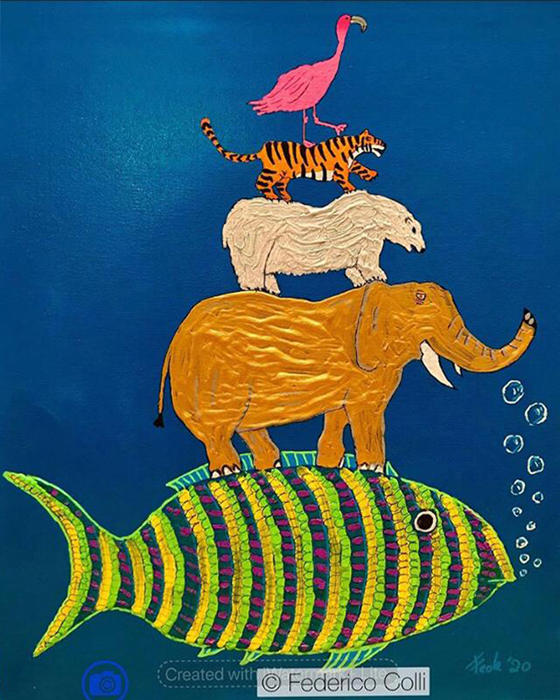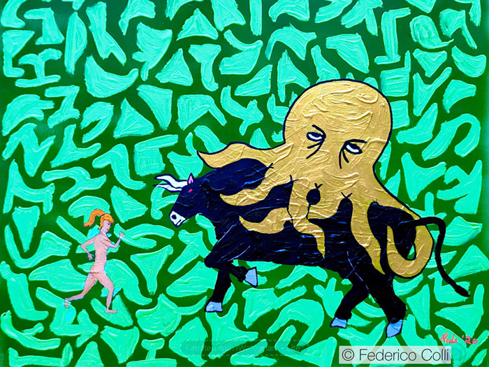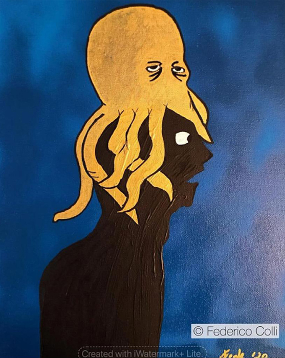 Nella poetica espressiva dell'artista Federico Colli pensiero e azione coincidono come un unicum, che suggella e sancisce la sua cifra stilistica connotativa e ne avvalora la portata e lo spessore comunicativo. La Dott.ssa Elena Gollini, apprezzando le qualità sostanziali della sua pittura ha affermato: “Federico si propone come artista di moderne vedute, al passo con il tempo e con la visione attuale della società. La sinergia tra pensiero ideativo e azione esecutiva diventa un tassello basilare e primario per la riuscita ottimale delle sue pregevoli composizioni, dal gusto squisitamente di tendenza Pop Art. La rivisitazione compiuta da Federico agli insegnamenti e alle lezioni magistrali impartite e sancite dagli illustri maestri come Andy Warhol e Roy Fox Lichtenstein, si traduce in rappresentazioni personalizzate con elementi e componenti inediti e inusuali, che danno centralità alla profusione cromatica sempre ben dosata e misurata nella stesura e a un disegno stilizzato ed essenziale nel tratto segnico, quasi riportato in stile caricaturale oppure con impronta fumettista. Federico predilige colori forti e accesi, vividi e corposi, densi e intensi, con una partitura marcata e incisiva. L'uso della tavolozza cromatica sgargiante e sfavillante imprime una potente e prorompente carica energetica vitale alle immagini. La figurazione è sempre improntata in modo importante e sottende significati e messaggi allusivi, da decodificare con attenta e acuta sensibilità di lettura interpretativa. La suggestione visionaria si basa su un impianto compositivo disposto su più piani e su più sequenze percettive, dove lo spettatore può addentrarsi e penetrare in più fasi di approccio recettivo. Federico è un fantasioso e giocoso sognatore e si destreggia abilmente nel multiforme e variegato filone figurale, provando delle peculiari ed esclusive chiavi d'accesso e delle argute e sagaci prospettive di rievocazione. Arte come occasione e come opportunità di crescita ed evoluzione. Arte come modalità di fuga fantastica dalla realtà, pur restando ancorato a solidi appigli reali. Arte come input e incipit per stupirsi e per stupire. Questi assioma riassumono le riflessioni di Federico nel suo incedere e lo guidano e lo accompagnano, costruendo pagina dopo pagina un virtuale diario di bordo, dove a ogni opera corrispondono emozioni e sentimenti speciali”.
