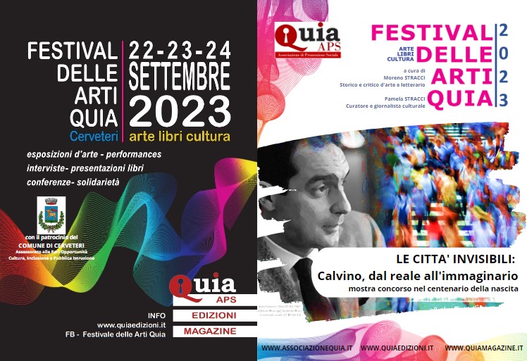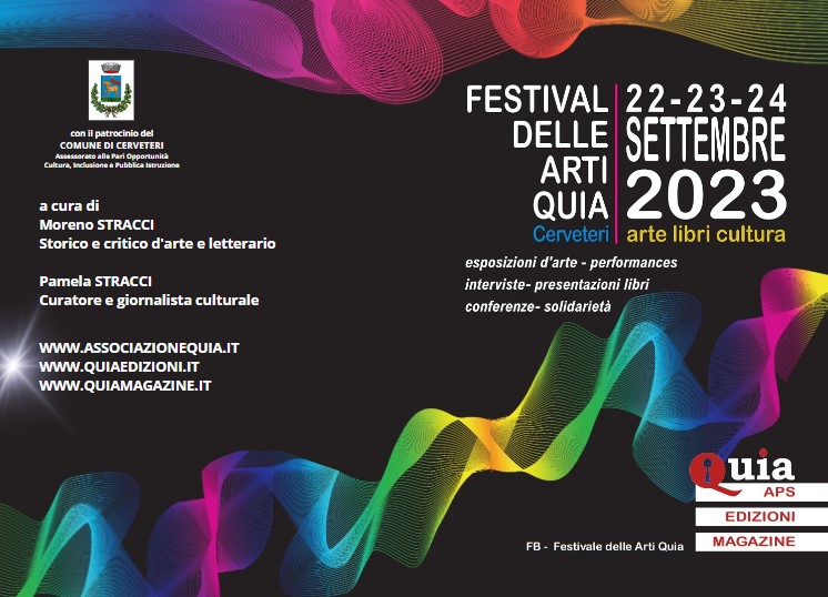 Dopo il grande successo dello scorso anno, torna la seconda edizione del Festival delle Arti Quia la manifestazione internazionale annuale fondata e curata da Moreno Stracci (Critico e storico d’arte e letterario), Pamela Stracci (giornalista e curatrice d’arte) e Ambra Frezza (insegnante, coreografa e scrittrice).