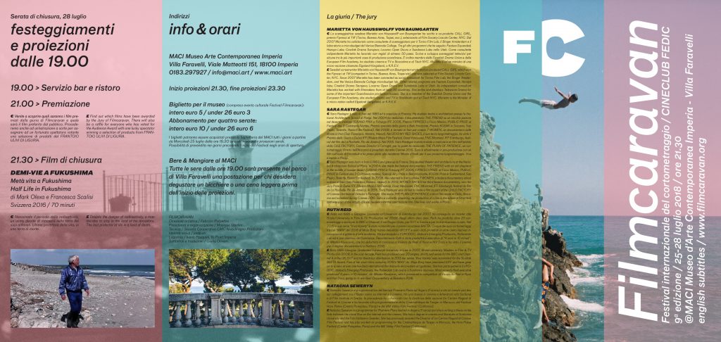 Nella serata conclusiva di sabato 28 luglio infine, l'assegnazione dei premi della giuria e del pubblico, sarà seguita dalla proiezione del film di chiusura Half life in Fukushima del duo italo-svizzero Mark Olexa e Francesca Scalise: un ritratto elegante e contemplativo di due uomini che hanno deciso di restare a vivere nella terra di nessuno circostante il reattore di Fukushima dopo l'incidente nucleare.