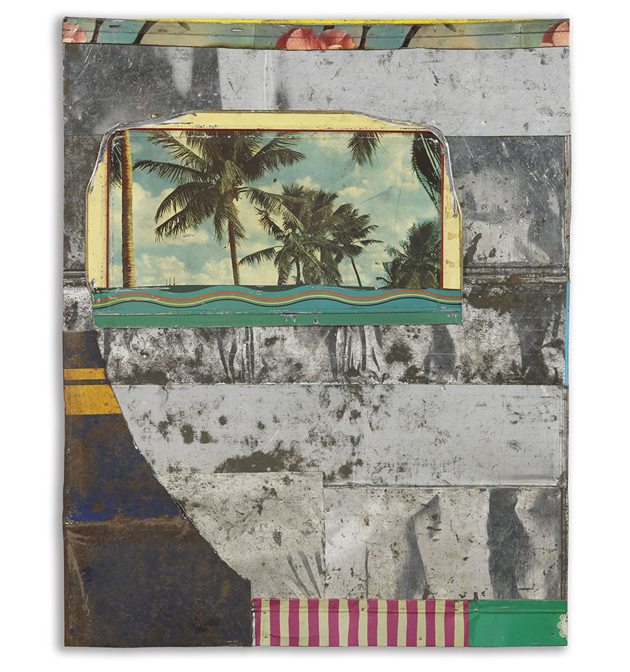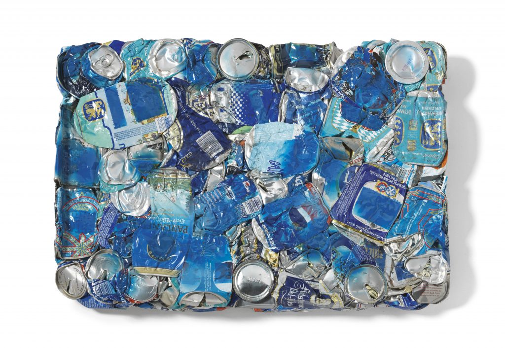 Lessico Americano presenta una selezione di opere, tra collage e assemblaggi – realizzati con francobolli d’epoca, carte di cioccolatini, involucri vintage di chewing-gum e scatole di latta –, compressioni di oggetti silver plated e lattine adombrate da sfumature di colori spray, che delineano un suggestivo percorso nell’immaginario della realtà del consumo. Le opere sono accumunate dall’impiego di segni, immagini, prodotti e oggetti di uso passato, riconducibili, come suggerisce il titolo della mostra, ad un possibile “lessico americano”, inteso come linguaggio e immaginario della seduzione.