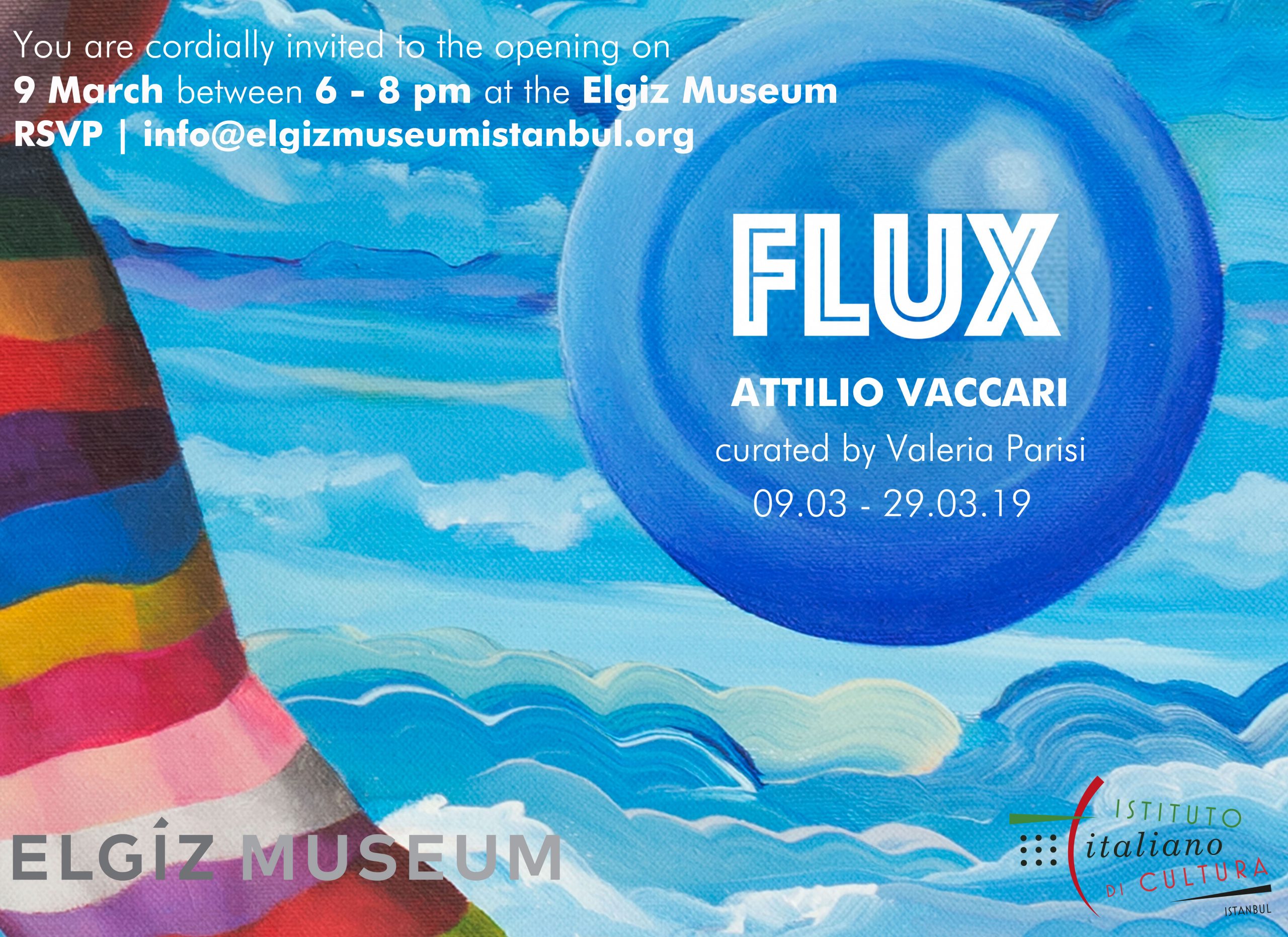 FLUX è la personale di Attilio Vaccari presso l’Elgiz Museum di Istanbul dal 9 al 29 marzo 2019, a cura di Valeria Parisi, realizzata in collaborazione con l’Istituto Italiano di Cultura di Istanbul.