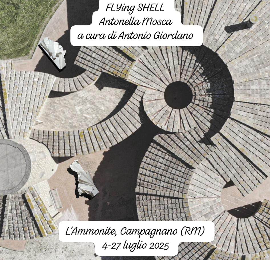 Un capolavoro dell’architetto Paolo Portoghesi, qual è L’Ammonite a Campagnano di Roma, immersa nel suggestivo paesaggio dell’agro romano, è apparso come cornice ideale nel rapporto tra creatività umana e natura circostante, per gli echi delle magiche geometrie di volumi e spazi, superfici curve, pieni e vuoti, luci e ombre nel silente dialogo tra l’equilibrio armonico e il dinamismo plastico delle sculture di Antonella Mosca e le architetture coclidi e spiraliformi del grande architetto romano.