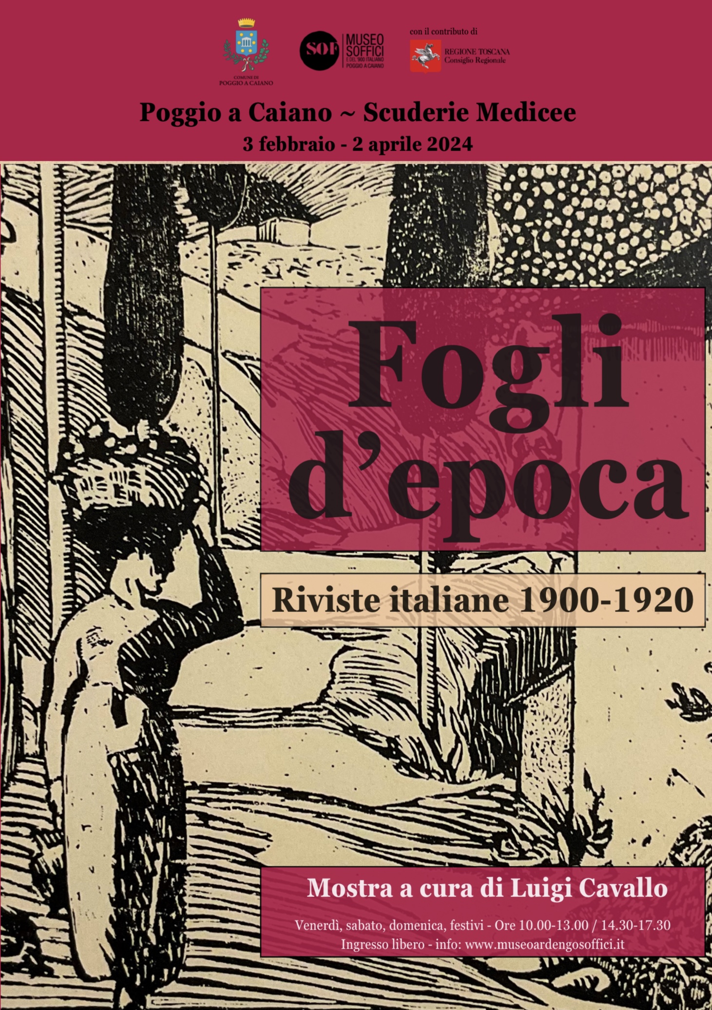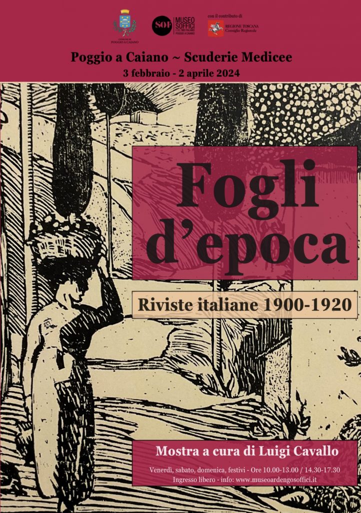 POGGIO A CAIANO. Sarà inaugurata il 3 febbraio alle ore 17 la mostra "Fogli d’Epoca. Riviste italiano 19900-1920". L’esposizione si potrà ammirare nel salone espositivo “Coresetti” presso le Scuderie medicee di Poggio a Caiano fino al 1 aprile 2024.