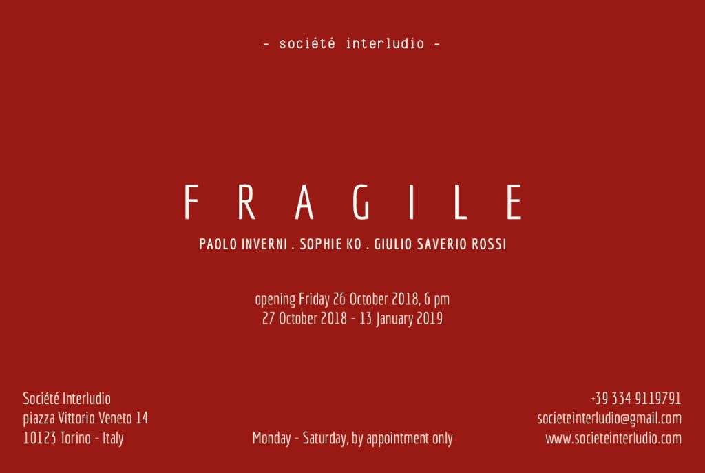 Lo spazio per l’arte contemporanea Société Interludio è lieto di inaugurare la propria attività espositiva con la mostra collettiva Fragile.